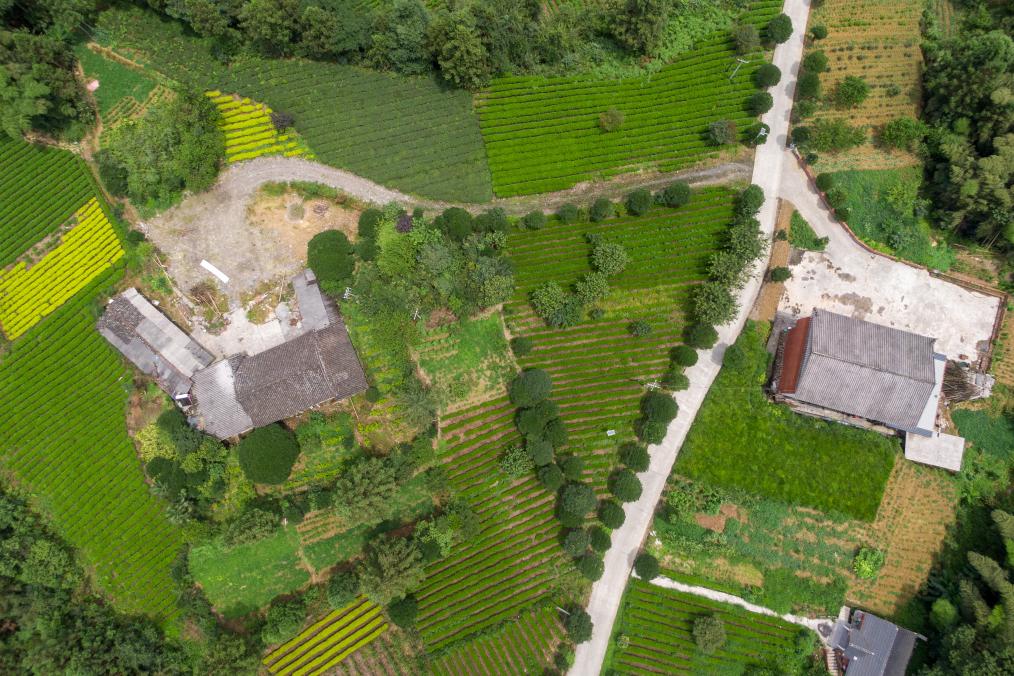 2023年7月28日,兰田村茶园与民居相映的美景。新华社记者杜子璇 摄