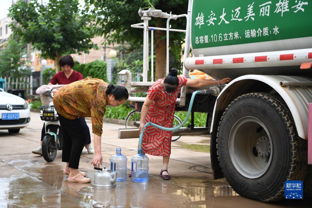 为缓解灾后城镇居民用水难题,目前,河北省涿州市已完成两个临时制水供水站点建设,站点内制水、检测、调试、出水工作已完成。同时,涿州市利用各地市支援的供水罐装车辆,为严重缺水地区供给生活用水。