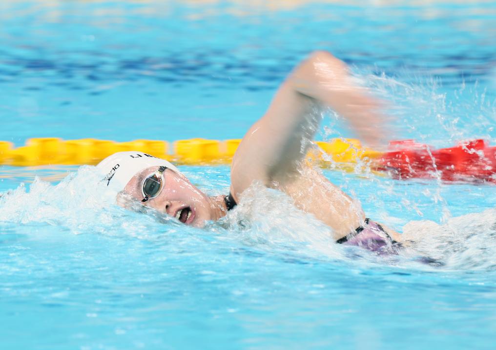 8月4日,李冰洁在女子1500米自由泳决赛中。新华社记者兰红光摄