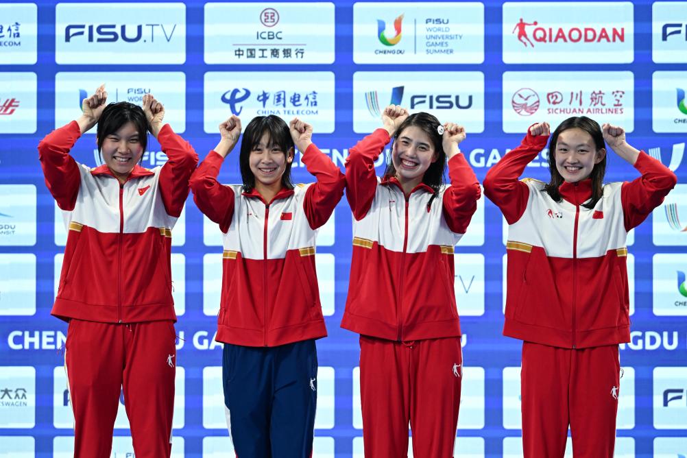 新华社成都8月4日电(记者马思嘉、姚友明)女子1500米自由泳轻松夺冠,再携手队友斩获女子4X200米自由泳接力金牌……4日,成都大运会东安湖体育公园游泳跳水馆成为奥运冠军李冰洁的主场。中国队“蛙王”“蝶后”也延续前几日的火热状态,在各自项目中展现出强劲实力。