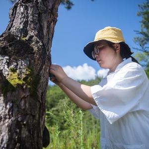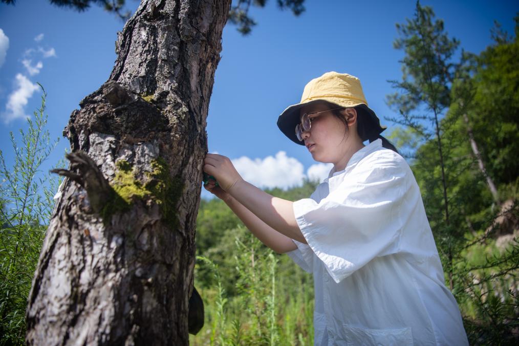 在神农架林区松柏林场,森林病虫害防治工程师黄世翠无暇欣赏风光。趁着天气合适,她和同事在松树林里释放花绒寄甲成虫及卵卡。