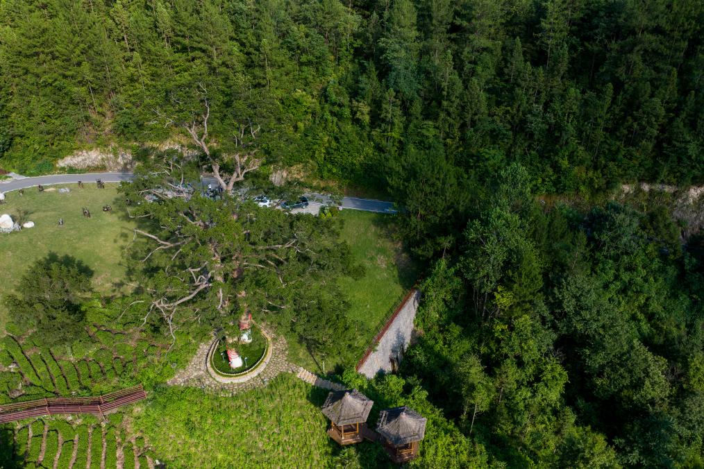 8月3日在湖北神农架林区木鱼镇拍摄的两姊妹树(无人机照片)。新华社记者伍志尊 摄