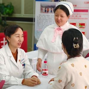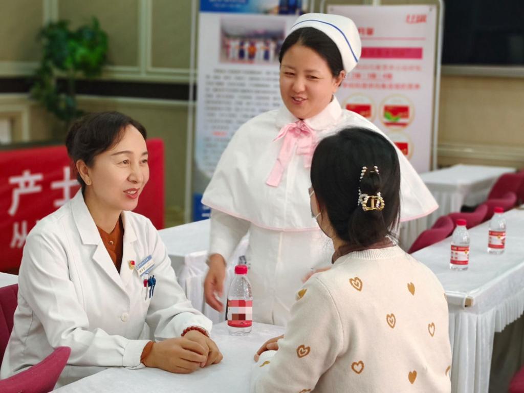 青海省人民医院产科医生俄洛吉(左一)正在为群众答疑解惑。(受访者供图)