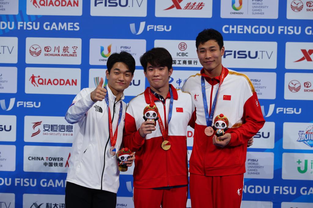 新华社成都8月5日电(记者刘彤、魏婧宇)成都大运会跳水项目5日继续在简阳文体中心游泳馆进行,台晓虎在男子1米板决赛中后来居上获得冠军,为中国队再添一金。