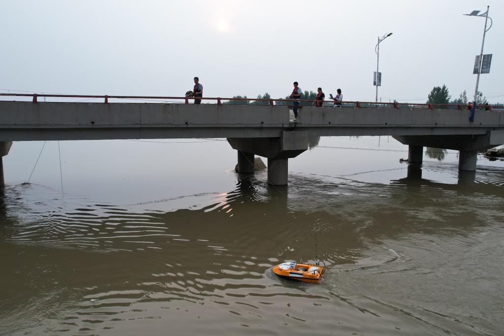海委水文局水文应急监测小分队在大清河上测流作业。新华社记者 刘诗平 摄