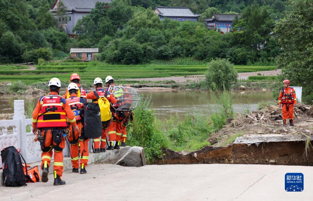 8月6日,吉林市消防救援支队队员穿过断桥。