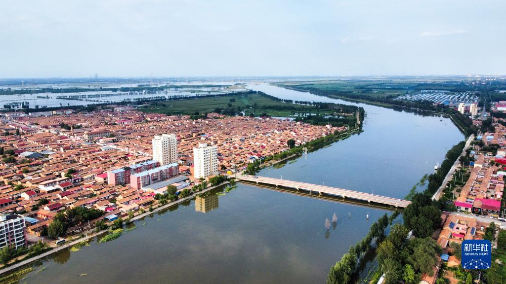 这是8月6日下午无人机拍摄的在大清河及堤北村庄(无人机照片)。