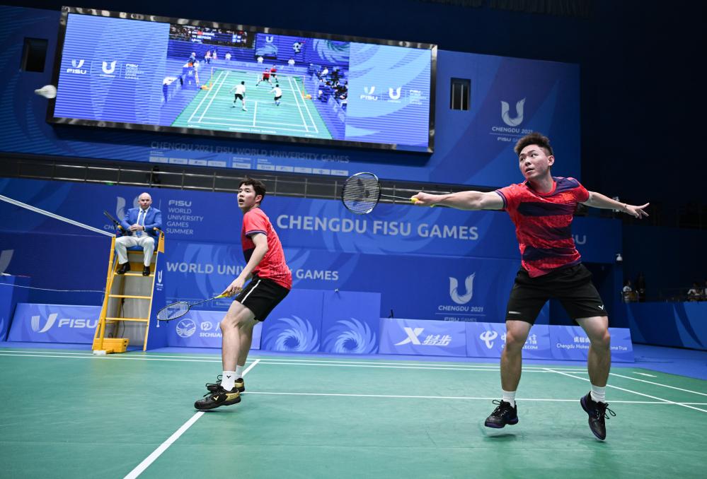 新华社成都8月6日电(记者丁文娴、谷训、何磊静)大运会羽毛球赛场6日展开单项赛的四分之一决赛和半决赛争夺,中国队选手在四个单项闯入决赛,其中男双和女双项目实现会师。