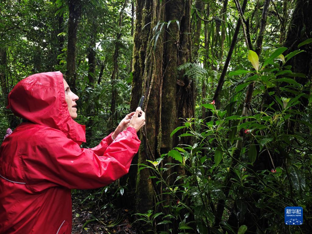 7月24日,一名游客在哥斯达黎加蒙特韦德云雾森林生物保护区内欣赏森林中的植物。新华社记者 范小林 摄