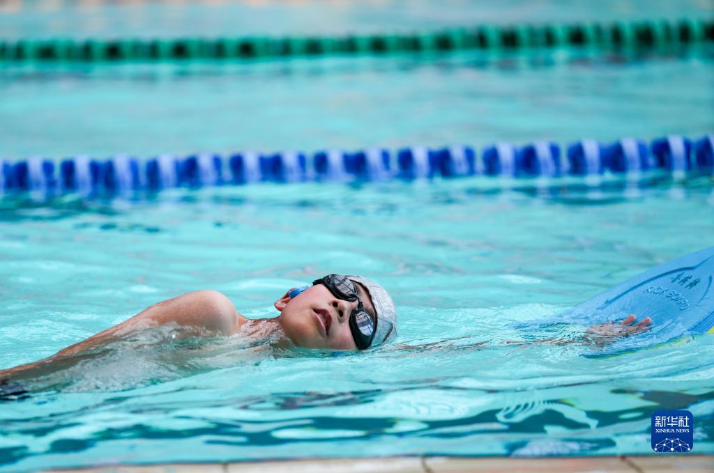 8月5日,重庆市特殊教育中心游泳队队员在重庆江南体育中心游泳馆进行水上练习。
