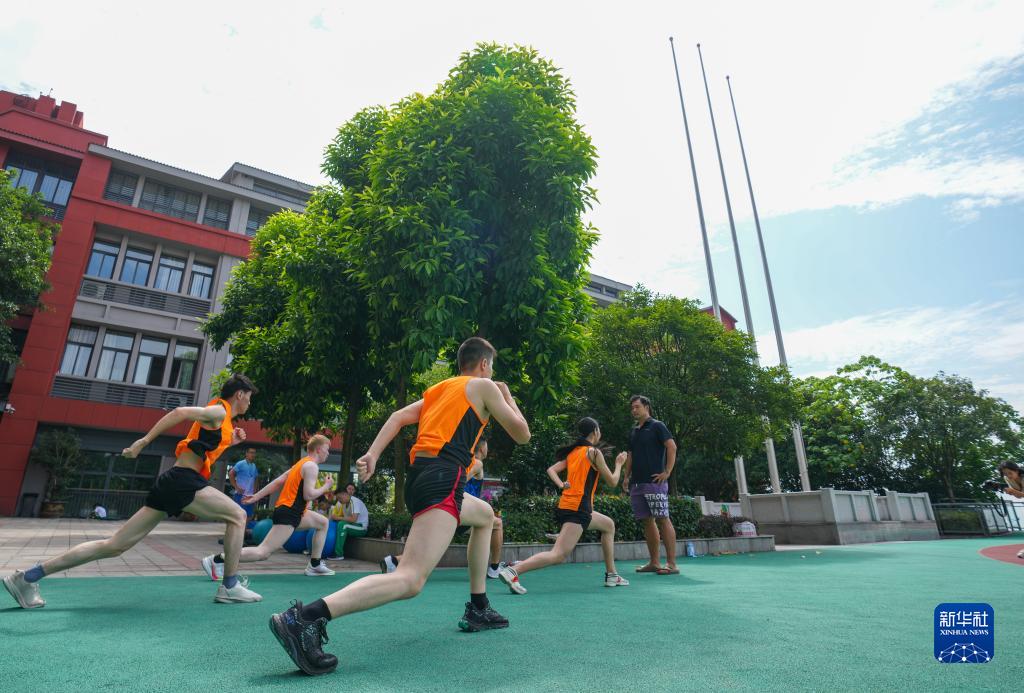 8月4日,重庆市特殊教育中心田径队队员在学校操场进行体能训练。