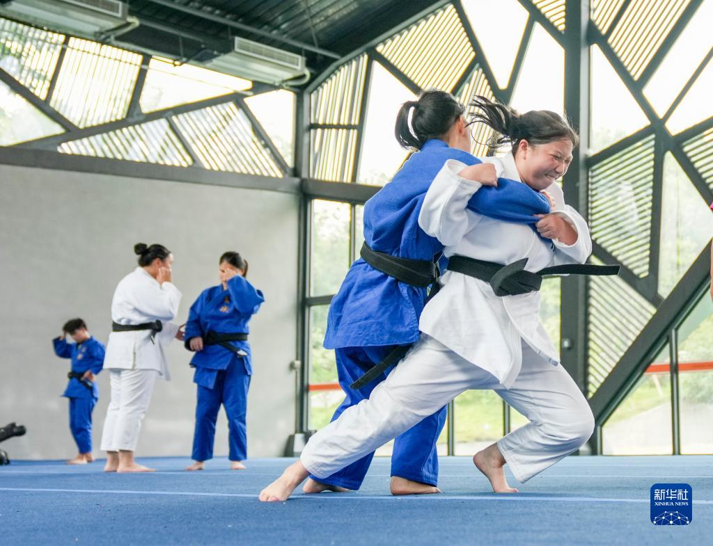 8月4日,重庆市特殊教育中心柔道队队员在进行训练。