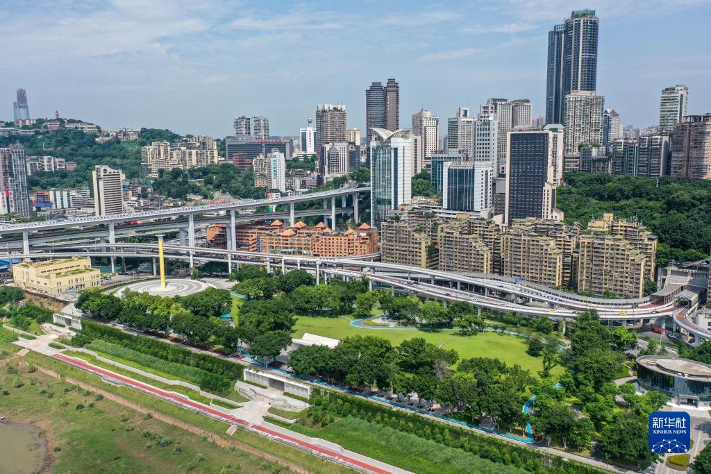 这是8月6日拍摄的位于重庆长江岸边的珊瑚公园一景(无人机照片)。