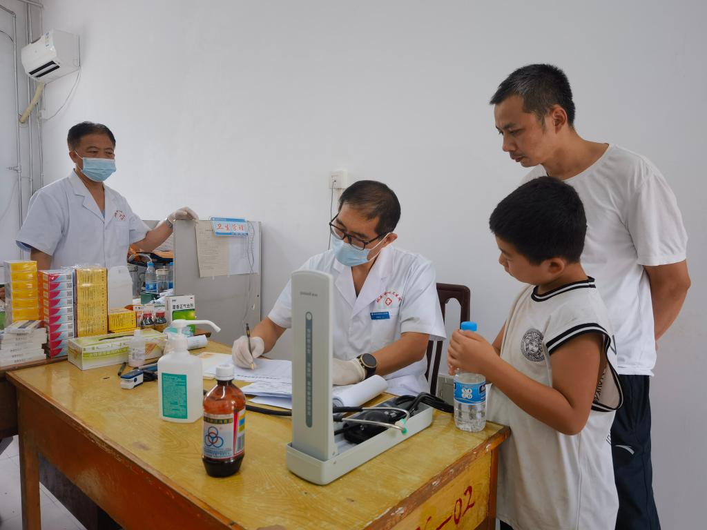 在这个高峰期曾同时容纳周边超过5000名受灾群众的防汛临时安置点,经验丰富的刘彦光和其他20余名医护人员几天来24小时轮班值守,累计接诊200余人次。由于部分患有慢性病的群众在转移时没有随身携带常用药,这里专门配备了降血压、降血糖及心脑血管药品。他们临时办公的校医务室桌上,摆放着除颤仪、心电图机等监测和检测设备。