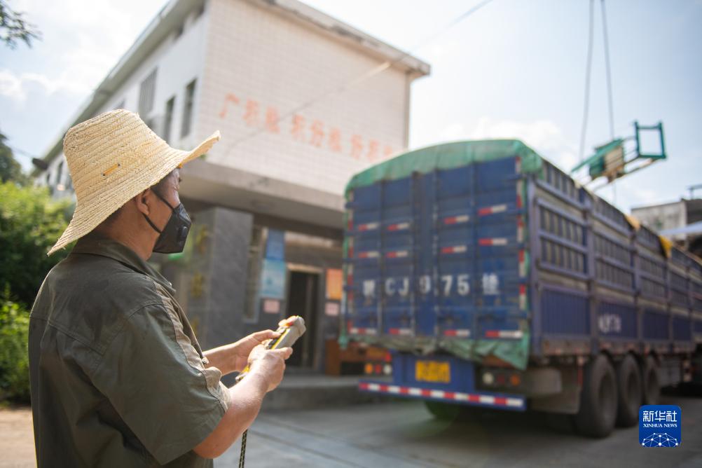 在湖南省郴州市安仁县国家粮食储备库,运粮的货车进出库区,一派繁忙景象。据了解,湖南安仁国家粮食储备库占地130亩,各类粮仓容量达6.5万吨。