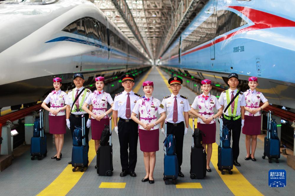 8月7日,担任首发列车值乘工作的班组在贵阳亮相。