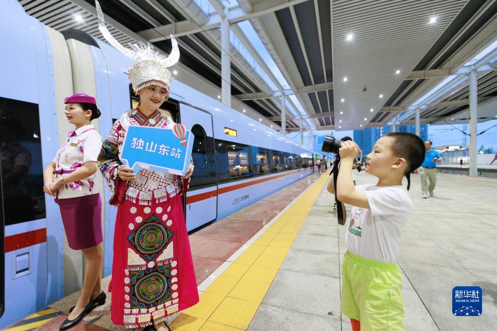 当日,随着贵阳北至荔波的D6171次列车驶出贵阳北站,贵阳至南宁高速铁路贵阳至荔波段正式开通运营。据了解,贵南高铁是我国“八纵八横”铁路网包头到海南铁路通道的重要组成部分,线路全长482公里,设计时速350公里,贵阳至荔波最快57分钟可达。