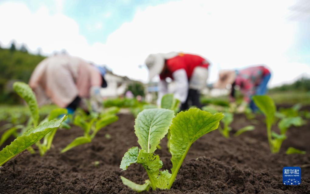 8月8日,贵州省黔南布依族苗族自治州都匀市毛尖镇坪阳村的村民在栽种蔬菜。