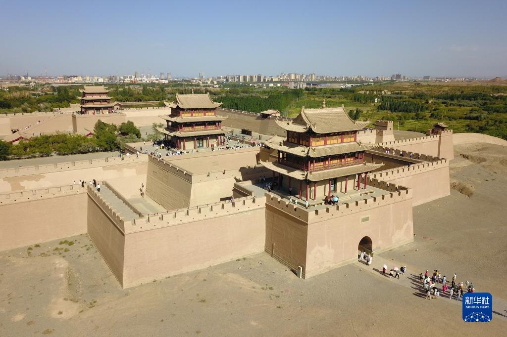 这是8月7日拍摄的嘉峪关关城(无人机照片)。