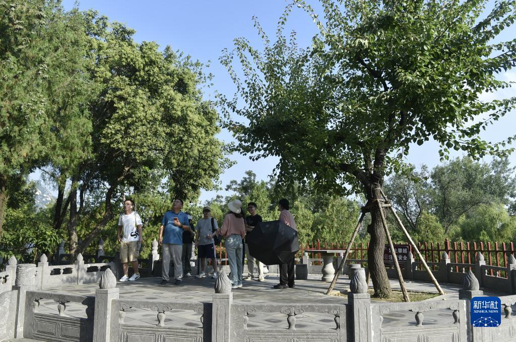 8月7日,游人在嵩阳书院内的“杏坛”参观。