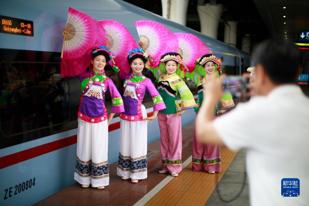当日,随着贵阳北至荔波的D6171次列车驶出贵阳北站,贵阳至南宁高速铁路贵阳至荔波段正式开通运营。据了解,贵南高铁是我国“八纵八横”铁路网包头到海南铁路通道的重要组成部分,线路全长482公里,设计时速350公里,贵阳至荔波最快57分钟可达。
