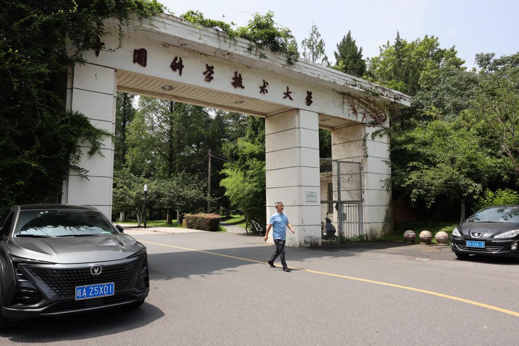 ↑彭承志走出位于安徽合肥的中国科学技术大学校门(7月21日摄)。