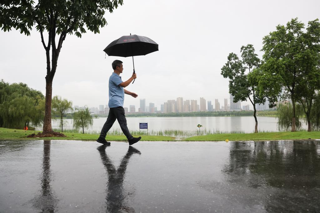 ↑彭承志行走在安徽合肥蜀西湖边(7月21日摄)。