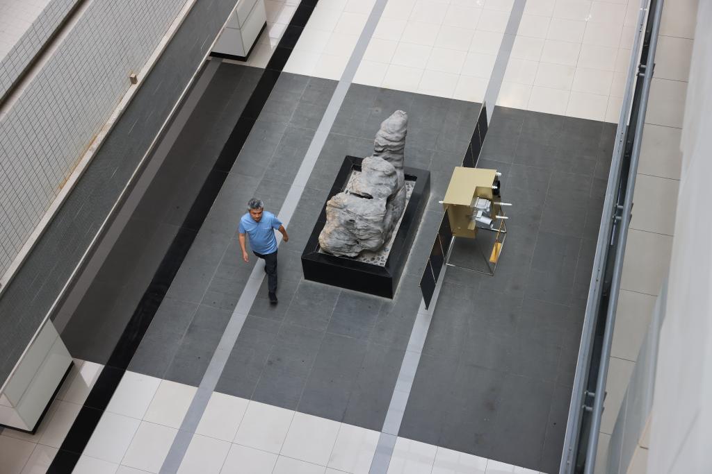 ↑7月21日,在位于安徽合肥的中国科学技术大学,彭承志经过放在大厅里展示的“墨子号”模型。