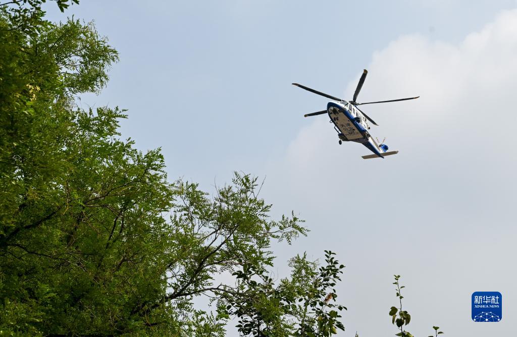 8月8日,天津市公安局警务航空总队直升机在天津市静海区台头镇上空执行任务。