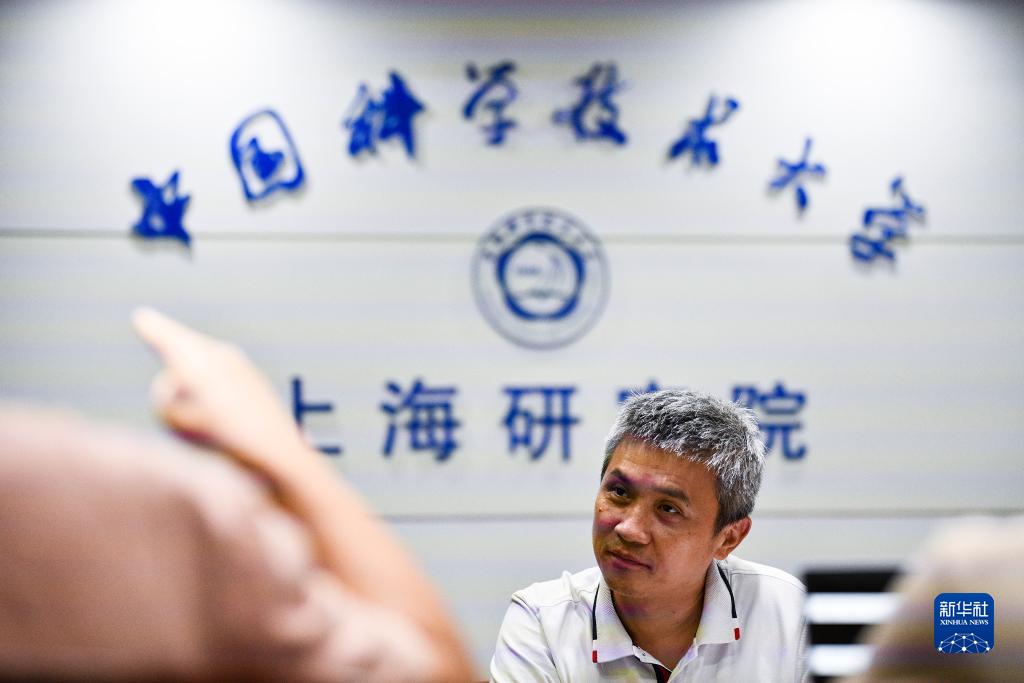 7月22日,在中国科学技术大学上海研究院,彭承志在组会上听取汇报。