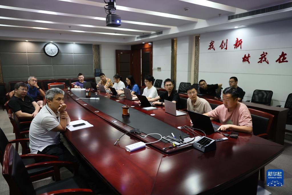 7月22日,在中国科学技术大学上海研究院,彭承志(前左)在参加组会。