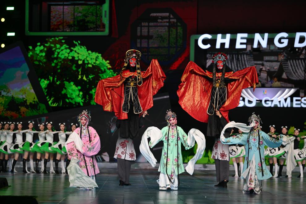 “我们引入了当下颇受年轻人喜爱的歌舞剧样态,用音乐这一国际化艺术与文化语言,去呈现一场歌舞剧式的‘青春嘉年华’。”闭幕式执行总导演魏思佳介绍道,川剧青衣唱腔与川味说唱歌手对歌、流行女团与说唱俑造型打击乐手和鸣……在歌曲选用上,闭幕式充分体现了中西音乐风格的融合。