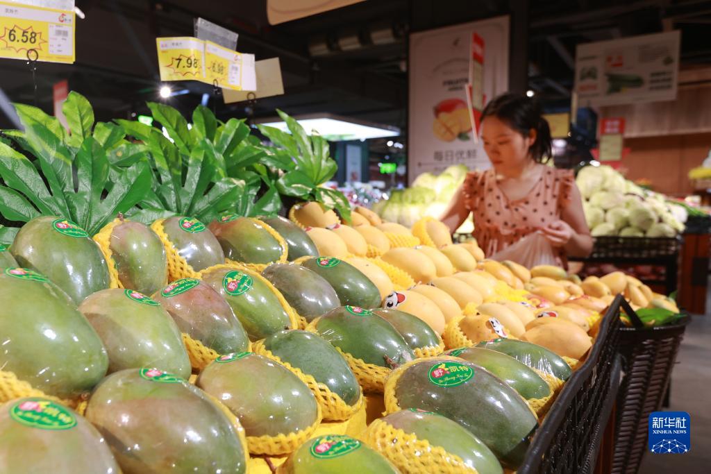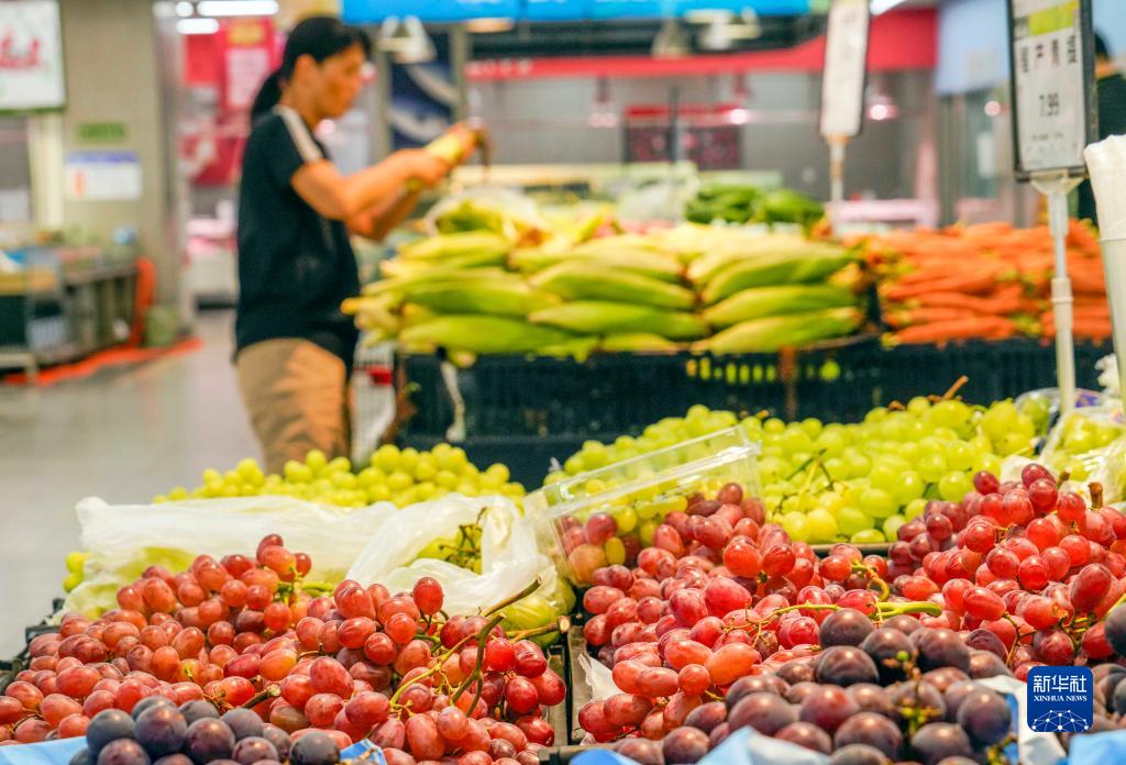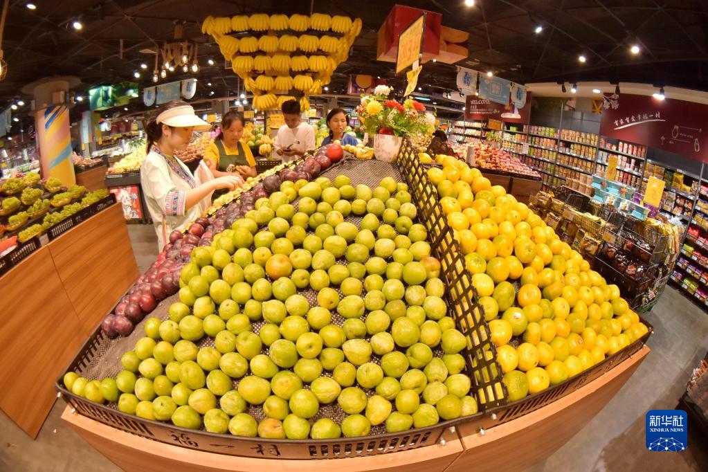 8月9日,消费者在贵州省黔东南苗族侗族自治州从江县一家超市选购水果。新华社发(石宏辉摄)