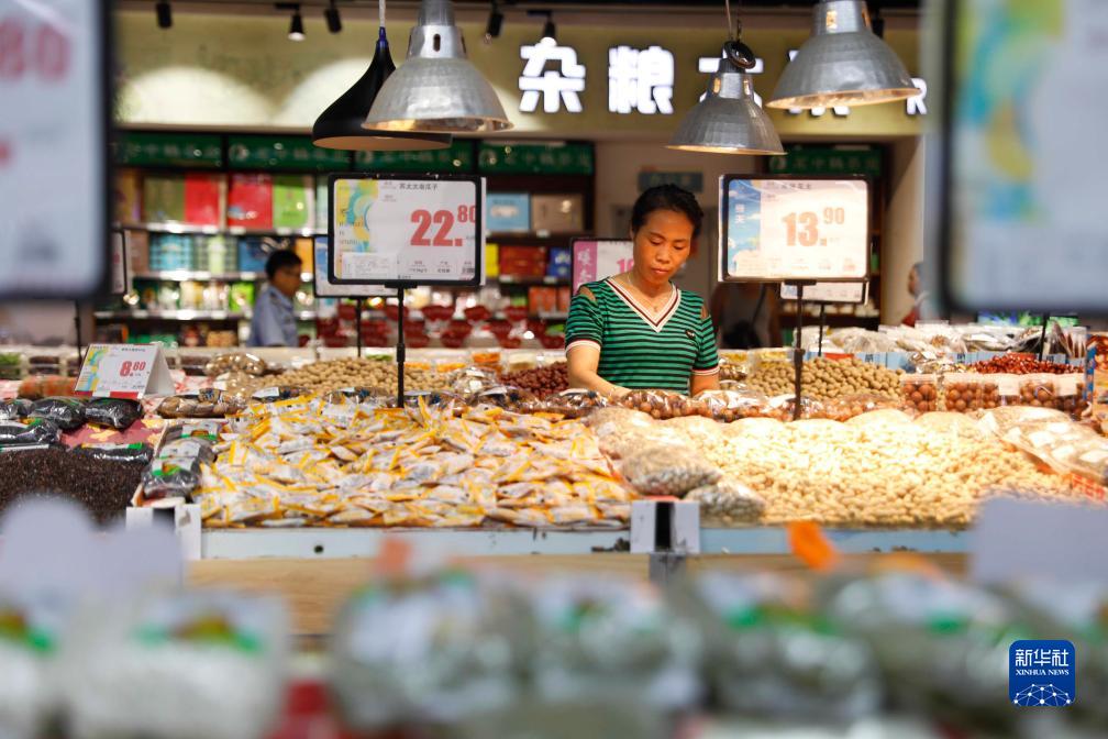 8月9日,消费者在贵州省黔东南苗族侗族自治州从江县一家超市选购商品。新华社发(罗京来摄)