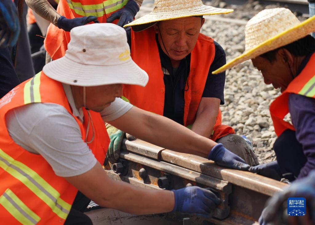 8月8日,工人们在抓紧抢修丰沙线,确保通车顺利。