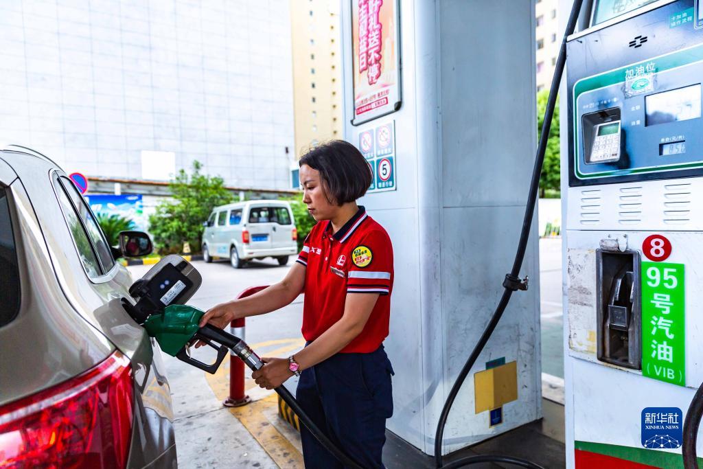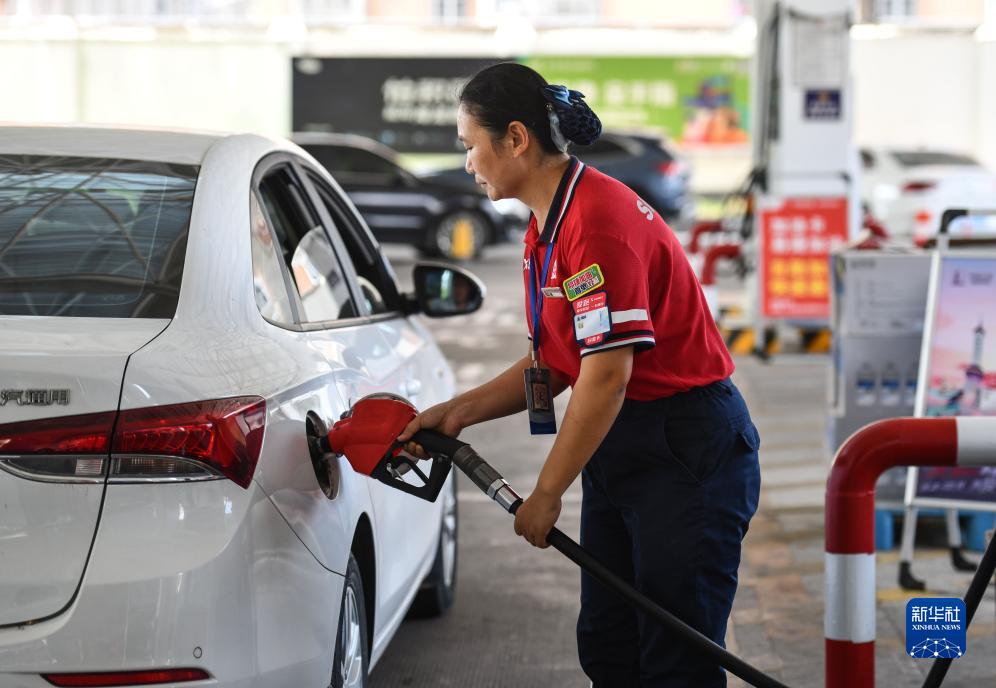 8月9日,安徽省阜阳市一加油站工作人员给车辆加油。新华社发(卢启建摄)