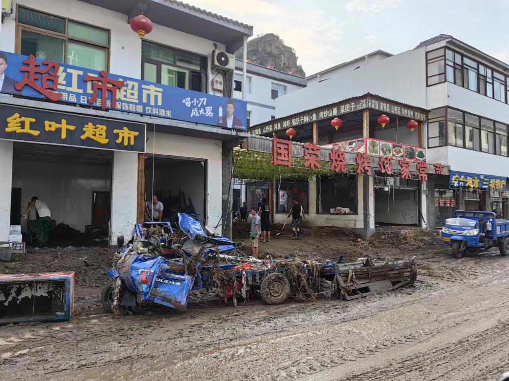 眼下,洪水虽然退去,但遗留下的灾害痕迹依然触目惊心:街道上淤积着棕黑色污泥,散发着刺鼻臭味;被洪水冲毁的车辆,废弃在道路两旁,车内堆积着淤泥、杂草;部分临街商铺一楼门窗被毁,地板上淤泥厚度约有1米……