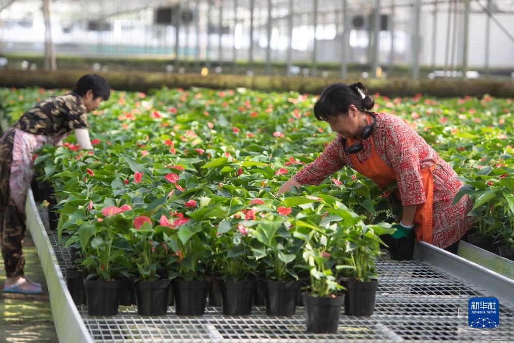 近年来,湖北省钟祥市积极调整农业产业结构,通过政策扶持、示范带动等方式,引导农民因地制宜发展特色花卉产业,带动周边村民就地就业,促进农户增收、农业增效。