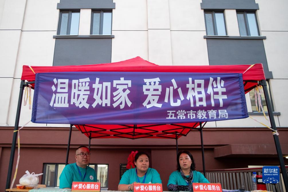 8月9日,在五常市时代中学集中安置点,五常市铁路学校的教师志愿者在岗位值守。