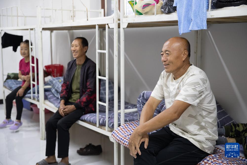 8月10日,在五常市时代中学集中安置点,人们坐在一起聊天。