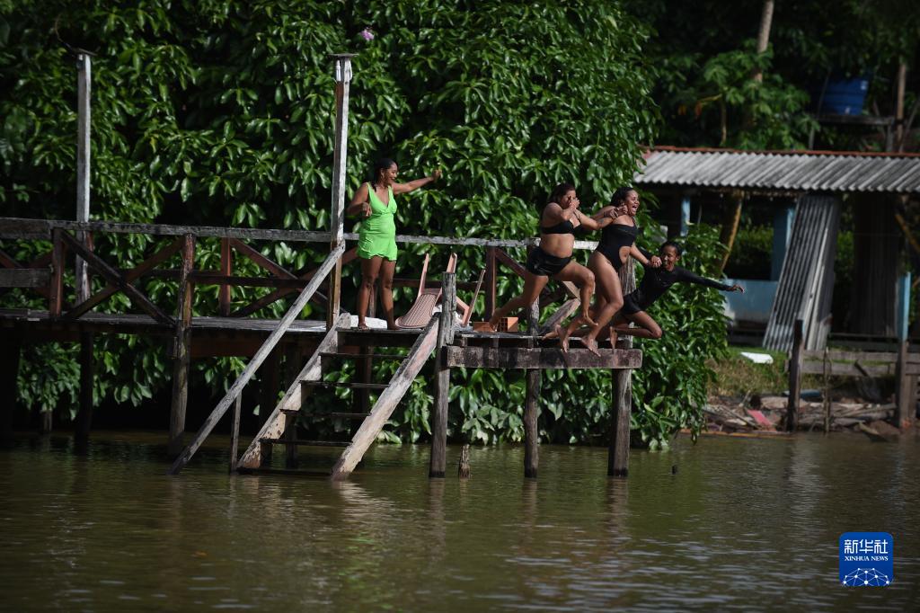 8月8日,当地居民在峰会主办地巴西贝伦市的昆布河边戏水。新华社发(卢西奥·塔沃拉摄)