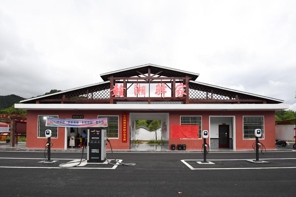 双方想法不谋而合。界联村确定了选址,完成了前期土方工程。界头村依托项目,建设驿站主体建筑与休闲广场,还安装了汽车充电桩供过往车辆使用。从2022年6月开工以来,历时一年多,“赣湘驿家”于今年7月1日正式投入使用。