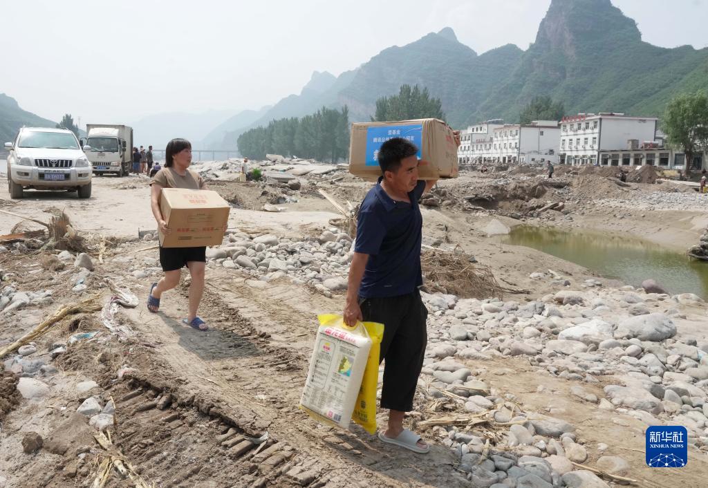 近日,河北省保定市涞水县出现强降雨,部分村庄交通、通讯等受阻。强降雨过后,当地在积极组织力量抢修重建的同时,及时将政府采购和社会各界捐赠的粮油、蔬菜、饮用水等物资送到群众家门口,以确保山区农村受灾群众基本生活需求。