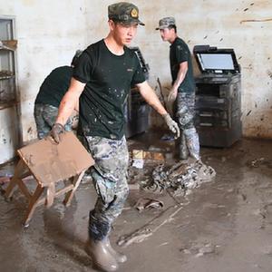 连日来,武警河北总队保定支队组织官兵在河北涿州中学开展清淤工作,为学校如期开学做好准备。