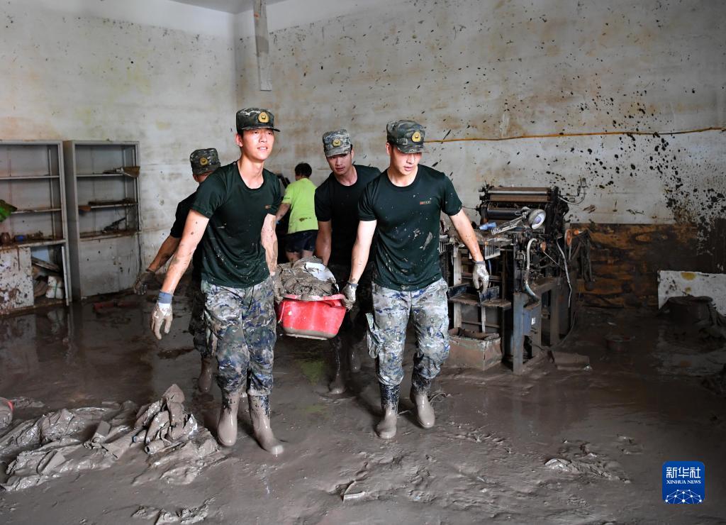 连日来,武警河北总队保定支队组织官兵在河北涿州中学开展清淤工作,为学校如期开学做好准备。