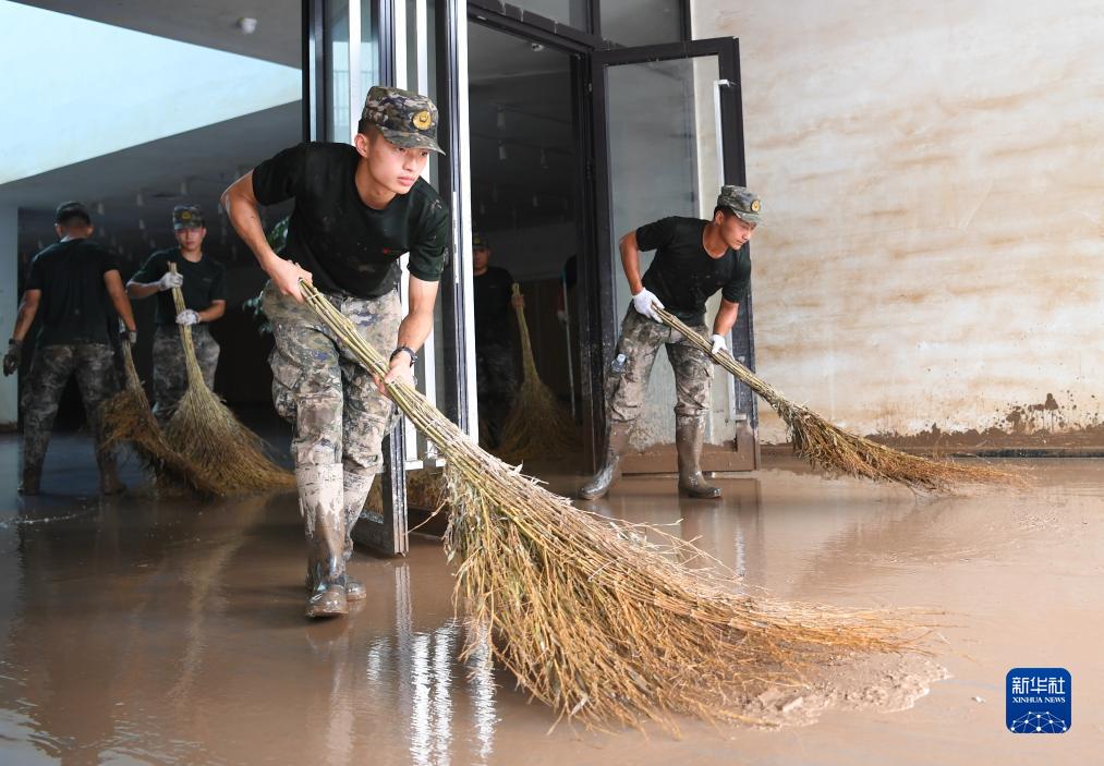 连日来,武警河北总队保定支队组织官兵在河北涿州中学开展清淤工作,为学校如期开学做好准备。