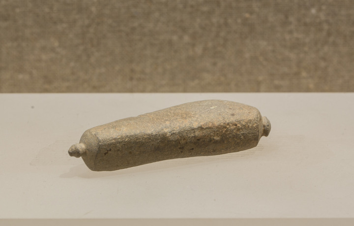 玉器制作离不开穿孔技术。从实物看,这枚选用砾石作为材质制成的石钻长约6.3厘米,上下两端各有一个螺旋纹状的钻头。考古发现,钻头有使用过的痕迹。
