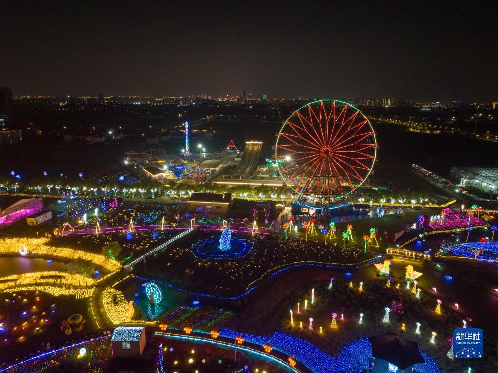 8月10日拍摄的宁波市江北区达人村景区夜景(无人机照片)。