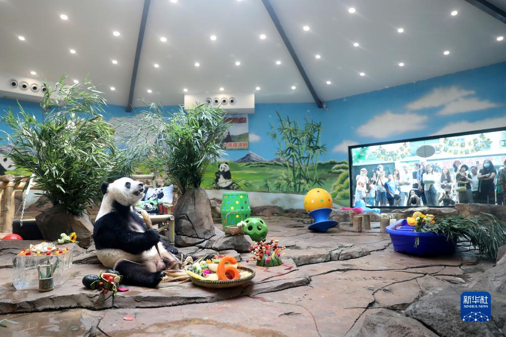 当日是大熊猫“刚刚”(小名“青城”)的6岁生日,鞍山动物园为它准备了特制的生日大餐,众多市民游客前来为它庆生。 大熊猫“刚刚”2017年出生于中国大熊猫保护研究中心雅安碧峰峡基地,于2020年5月21日来到鞍山动物园。