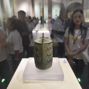 8月9日,观众在河南省开封市博物馆里参观“大晟夷则”铜编钟。